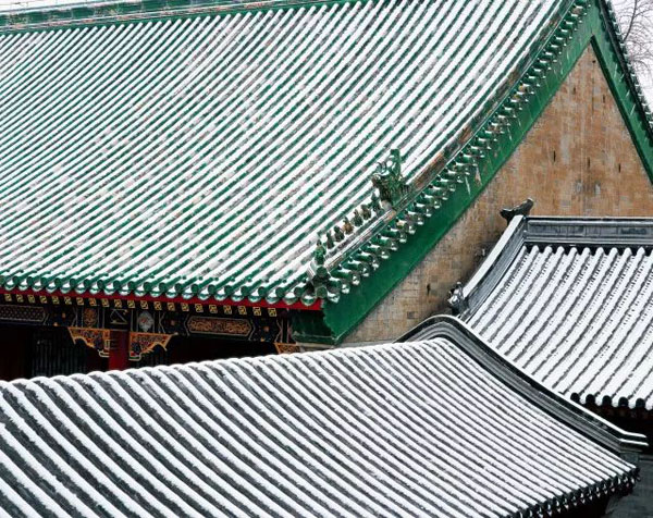 綠色琉璃瓦,僅次于黃色,多出現(xiàn)在城門或是親王的府邸、宗教寺院等主要建筑的屋頂通常也會(huì)選用綠色琉璃瓦。