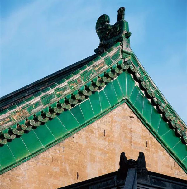 青色琉璃瓦與天色相近,是代表天的顏色,多用于隆重的祭祀建筑之中。