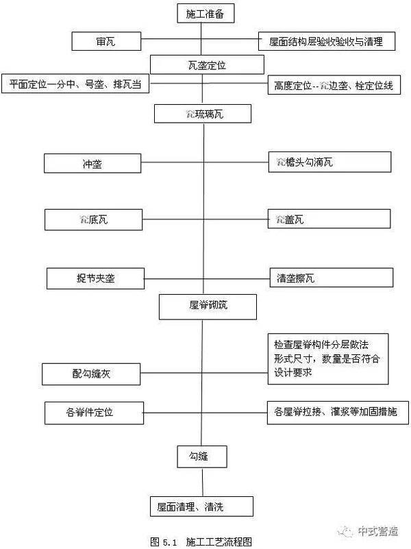 5.2.8  屋面琉璃瓦施工完畢后,清潔瓦面的灰漿,每天在完工部分安裝瓦件及最后的工序后,要用干凈的棉紗將瓦面清理干凈,以保持瓦的清潔及亮度。