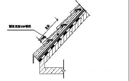 2) 對(duì)30°以上坡屋面采用預(yù)埋銅絲掛瓦條,在基層施工應(yīng)注意檢查,確保銅絲掛瓦條在間距、位置、數(shù)量能滿足要求。